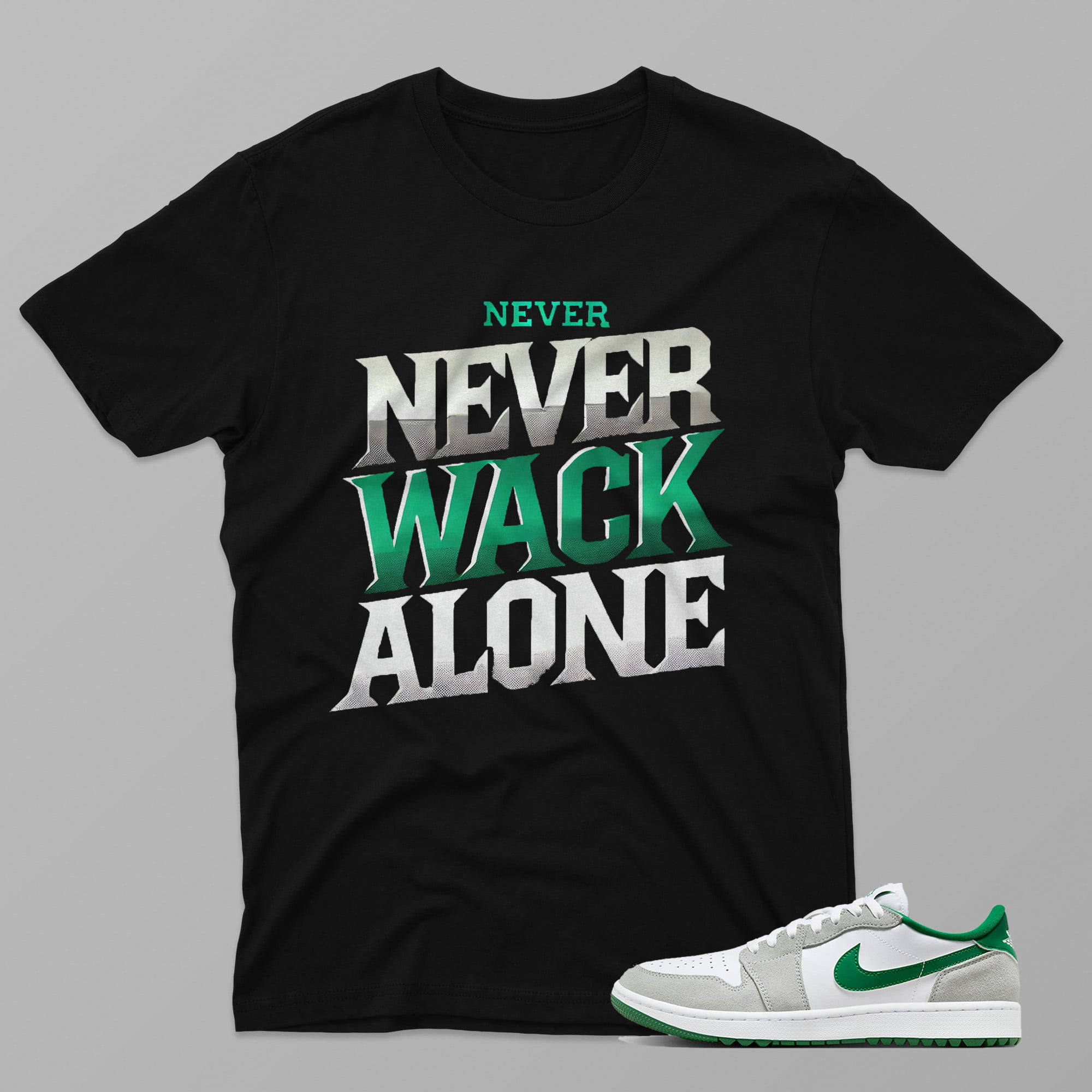 AJ1 Pine Green – Never Alone – Black T-Shirt