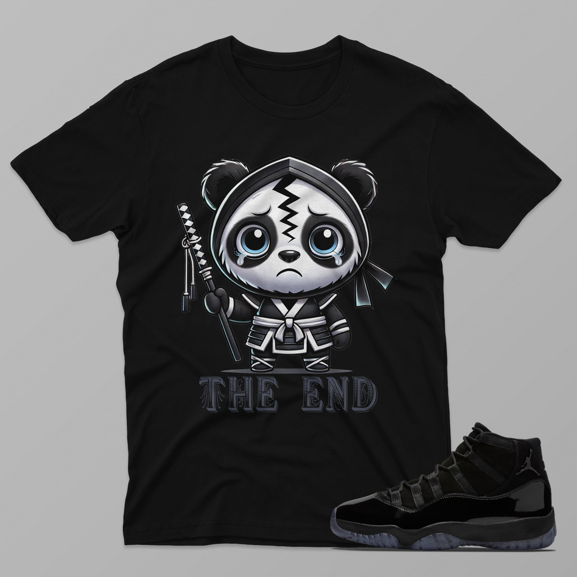 Name: AJ11 Cap and Gown – The End – Black T-Shirt