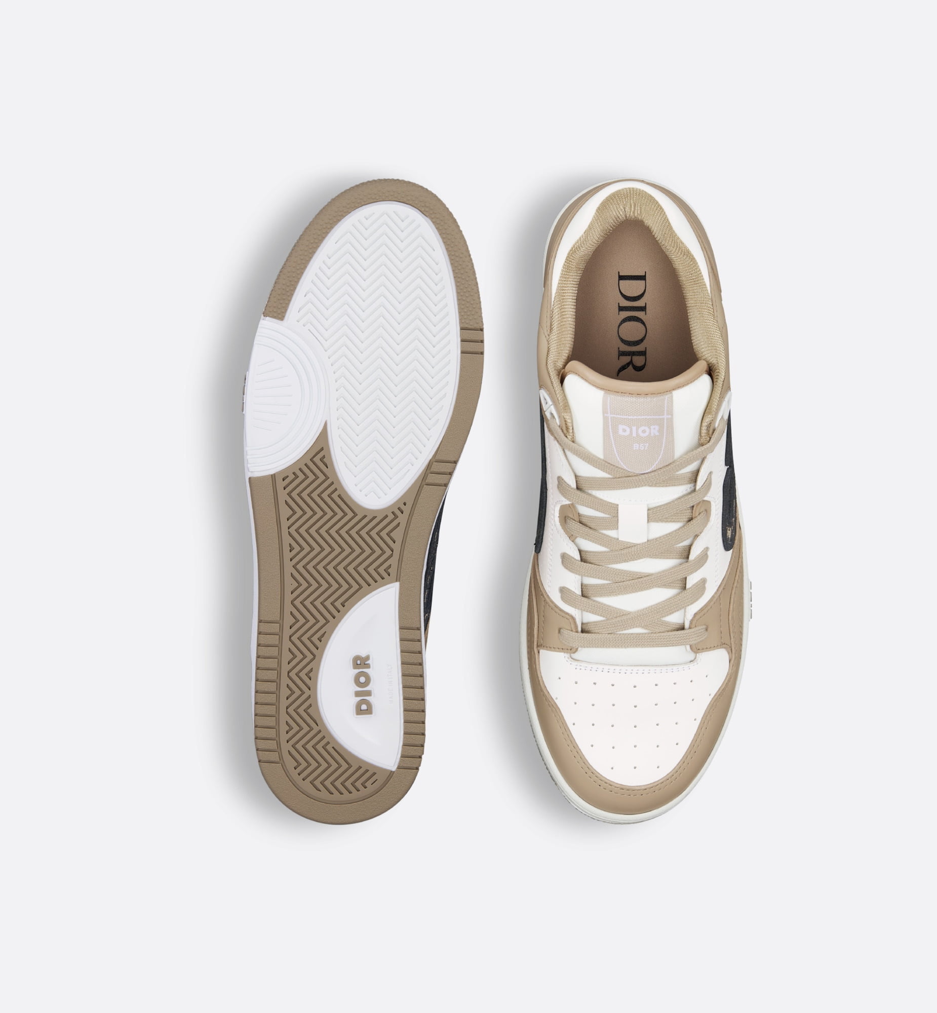 B57 Low-Top Sneaker Beige And White Smooth Calfskin With Beige And Black Dior Oblique Jacquard