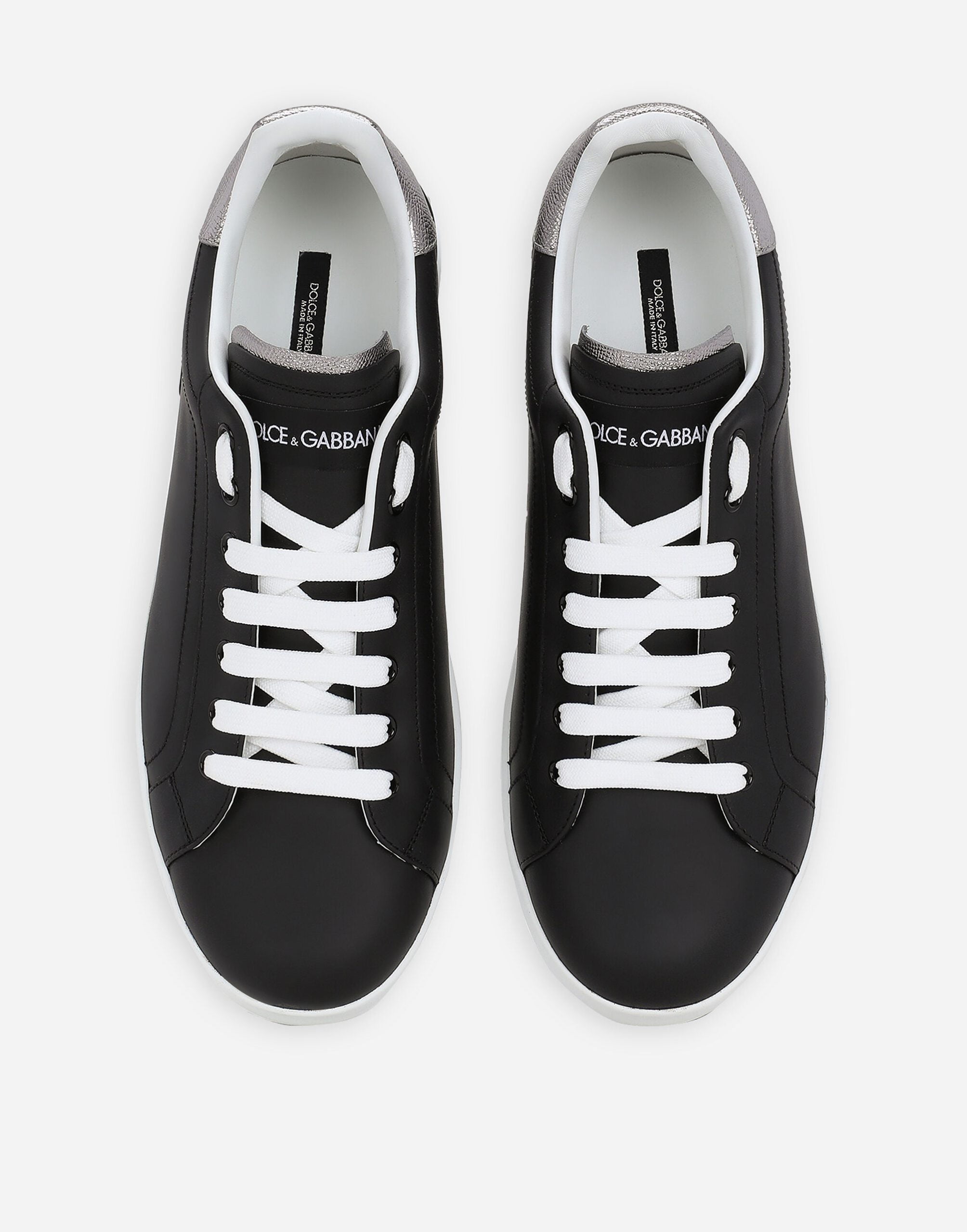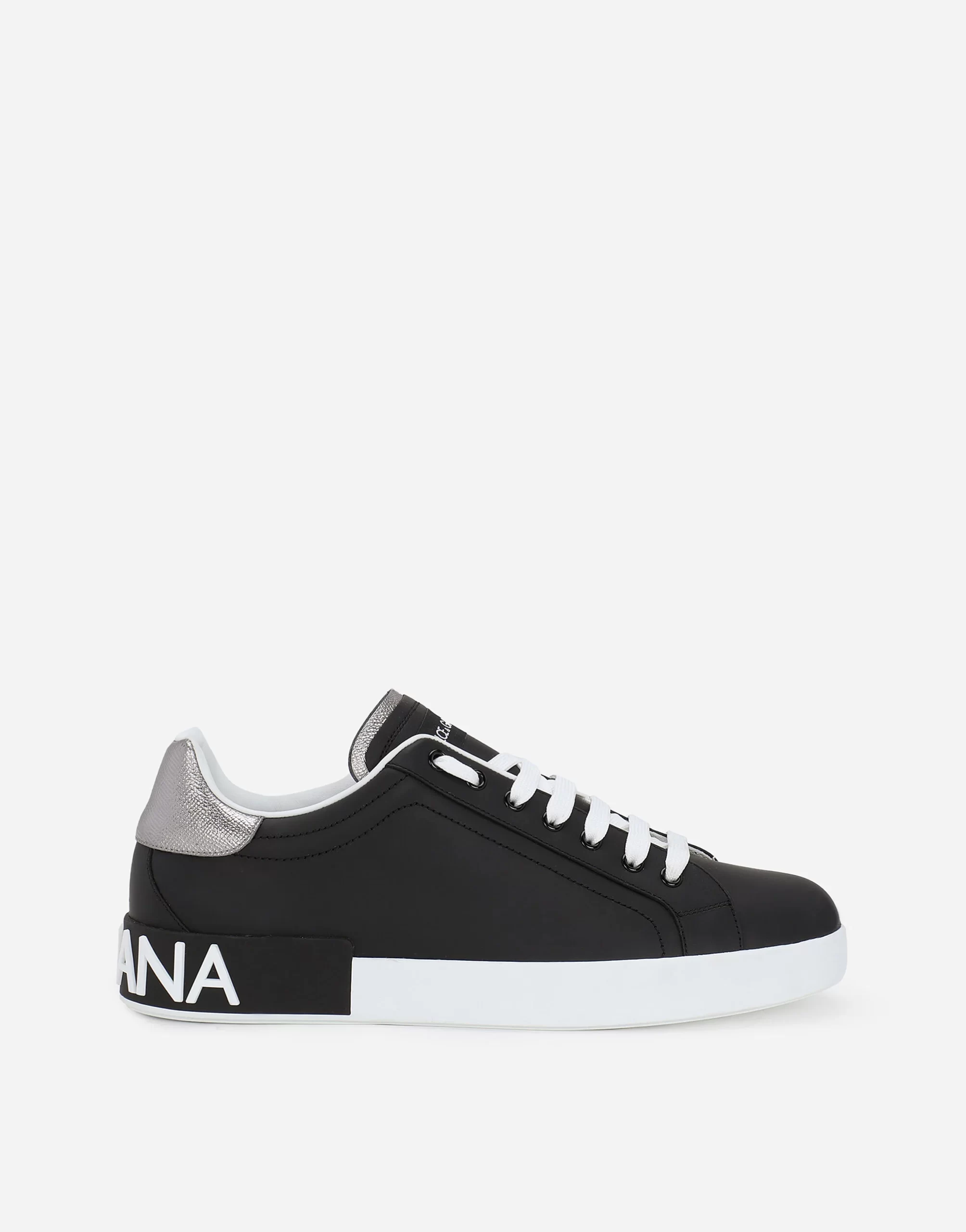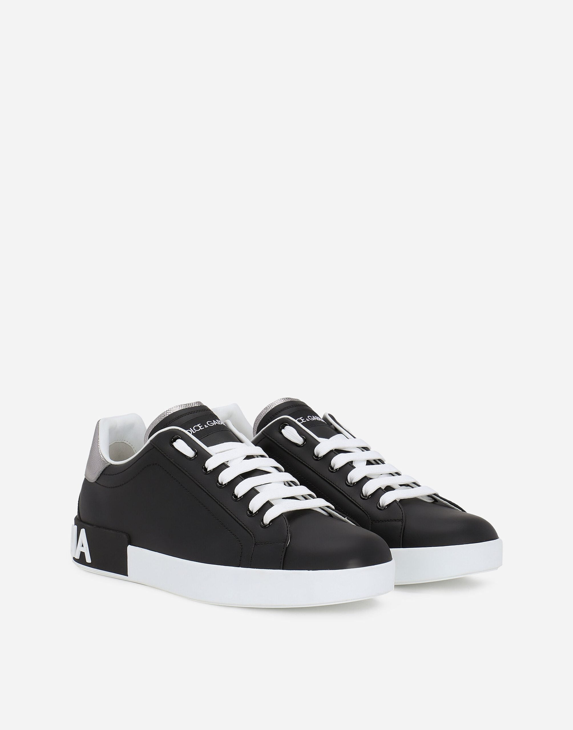These Portofino sneakers in calfskin nappa feature contrasting top-stitching and a spoiler on the back with macro-injected rubberized logo.